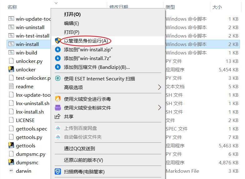 四、把MK-Unlocker-VM15.5压缩包解压,解压到任意目录即可,解压后右击以管理员身份运行win-install文件。