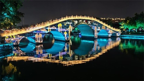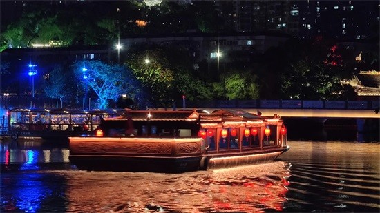第♴站:夜游印象南塘景区是免门票的,这里有美食一条街,酒吧一条街,有白鹭洲公园可逛,如果哪也不想走,就站在拱桥上,看桥下游船穿梭其中、两岸灯火辉煌、水中迷离光影都能让你赏心悦目。