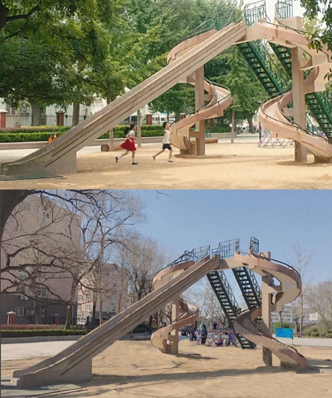 周周和林杨小时候玩滑梯的地方,还有剧中的秋千,也在旁边。