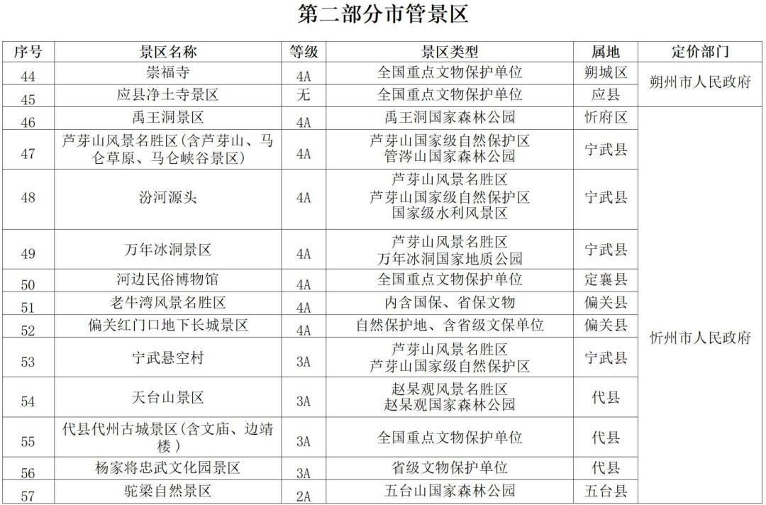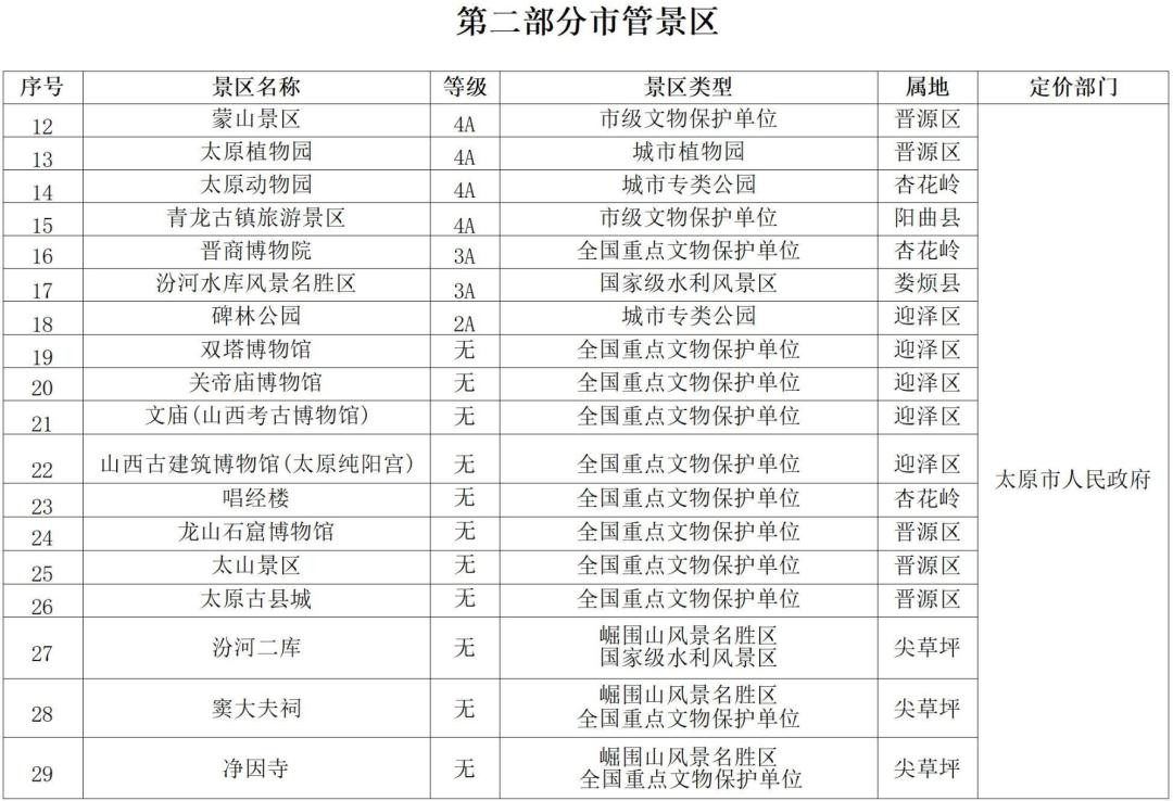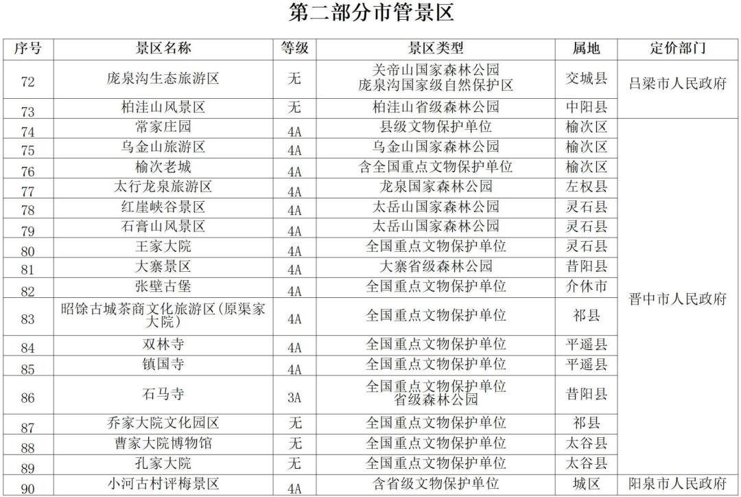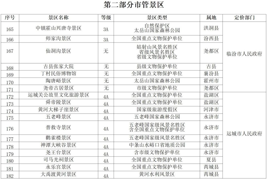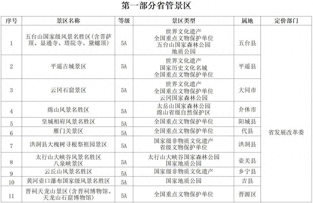 山西省发改委印发《山西省旅游景区(景点)门票价格管理目录》通知