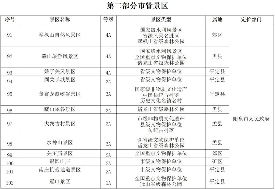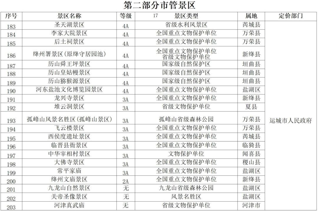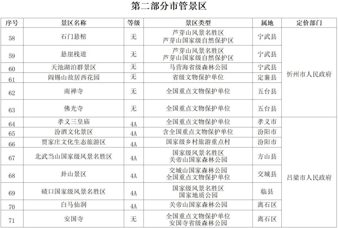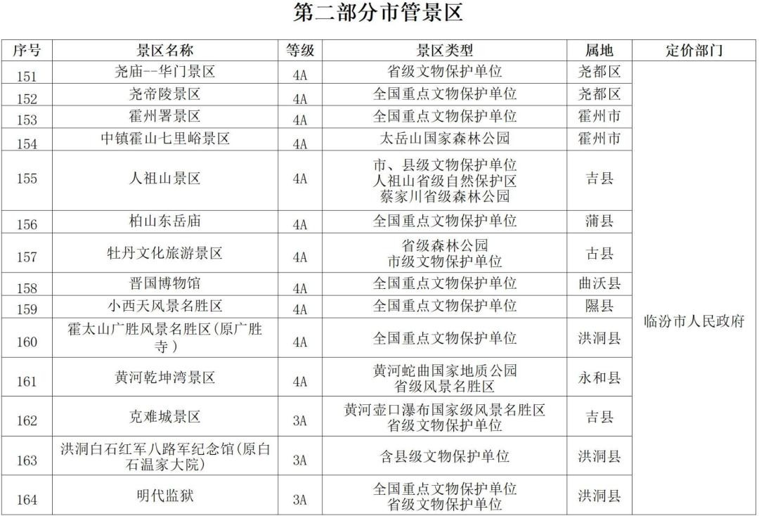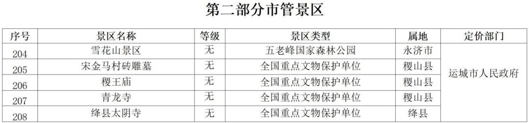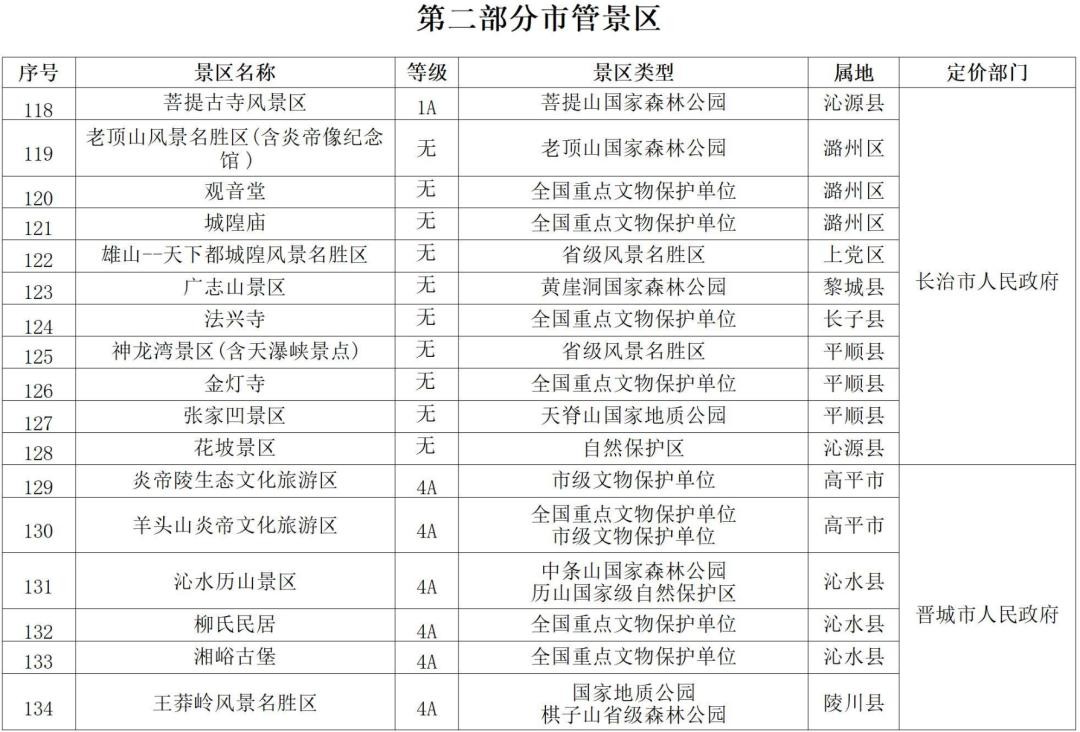 山西省发改委印发《山西省旅游景区(景点)门票价格管理目录》通知