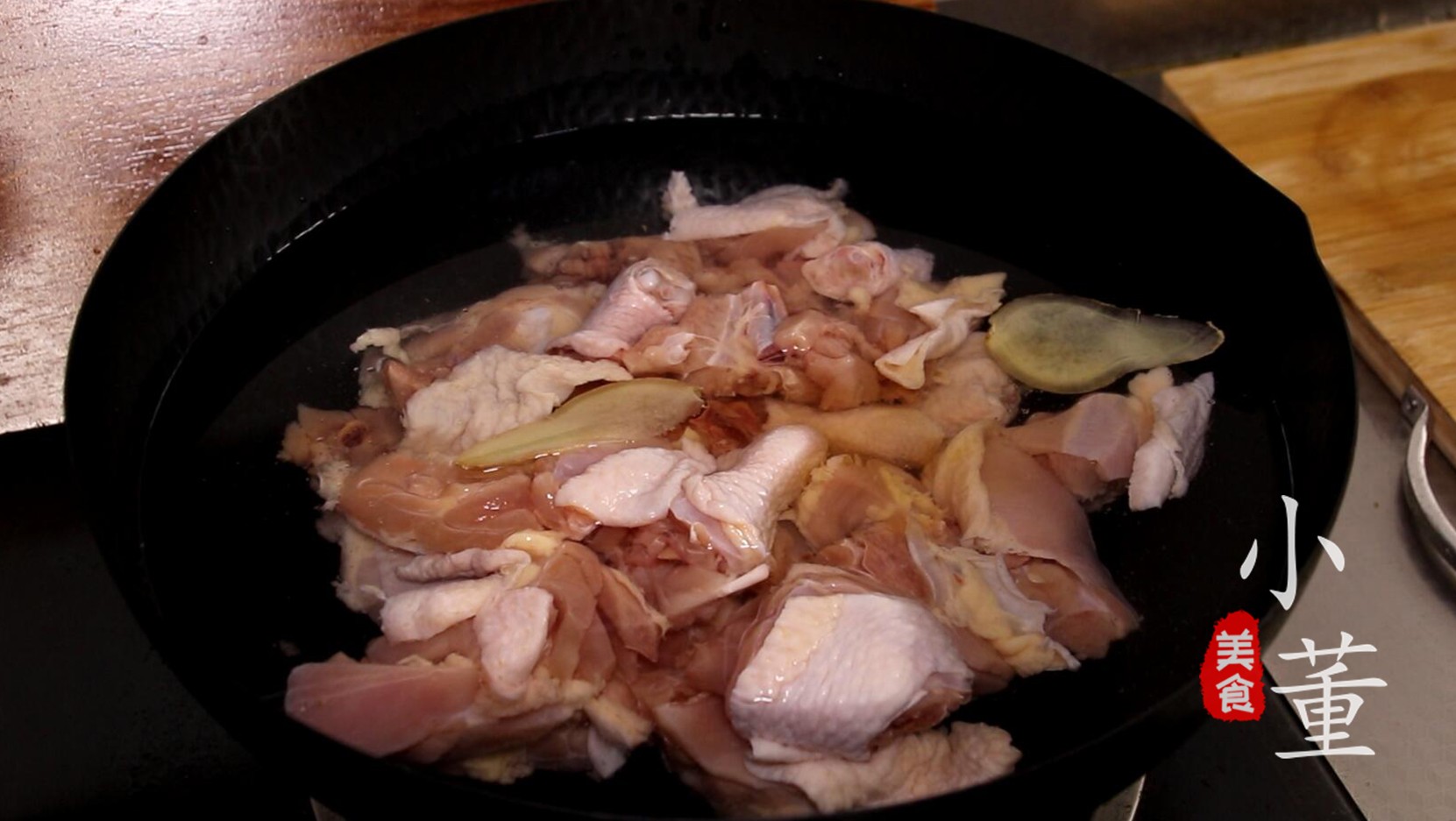 2、鸡肉焯水一下,去掉血水和杂质,同时还可以去腥,这样做出来的肉质鲜嫩无腥味,非常好吃
