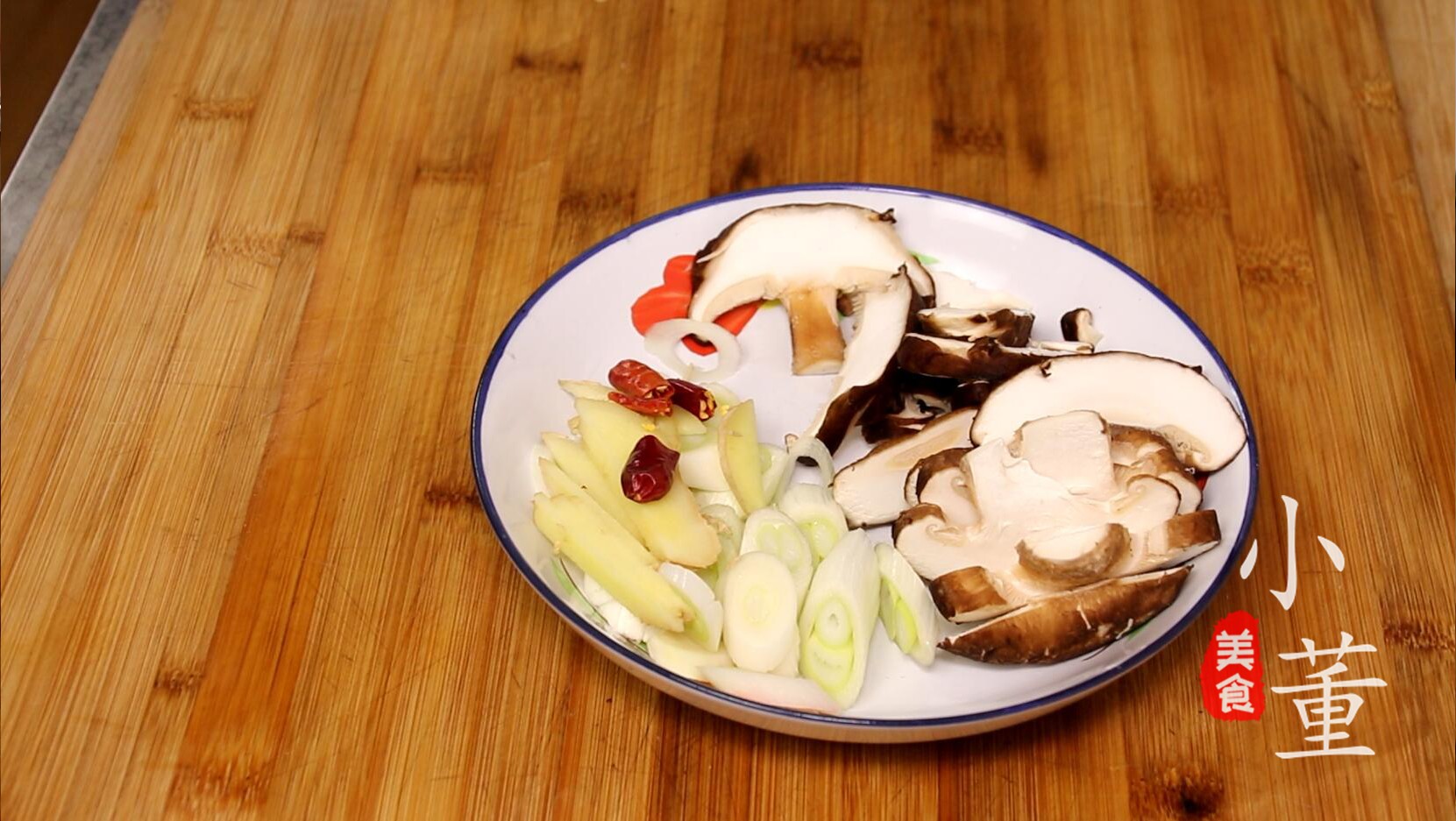 【配菜】:香菇,青辣椒,红辣椒,葱,姜,干辣椒,冰糖