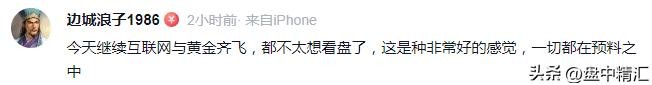 今天继续互联网与黄金齐飞,都不太想看盘了,这是种非常好的感觉,一切都在预料之中