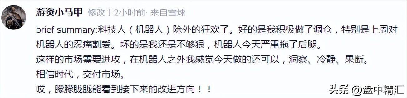 这样的市场需要进攻,在机器人之外我感觉今天做的还可以,洞察、冷静、果断。