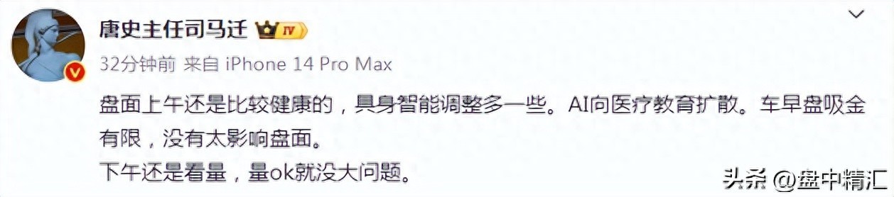 盘面上午还是比较健康的,具身智能调整多一些。AI向医疗教育扩散。车早盘吸金有限,没有太影响盘面。
