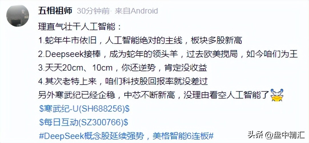 不做DeepSeek完全赚不到钱,但是暴涨意味着会伴随暴跌,这种没有先手的去开仓,随时一个巨大震动会亏的人都没有的,当然这个题材大概率会有第二波,真难啊。