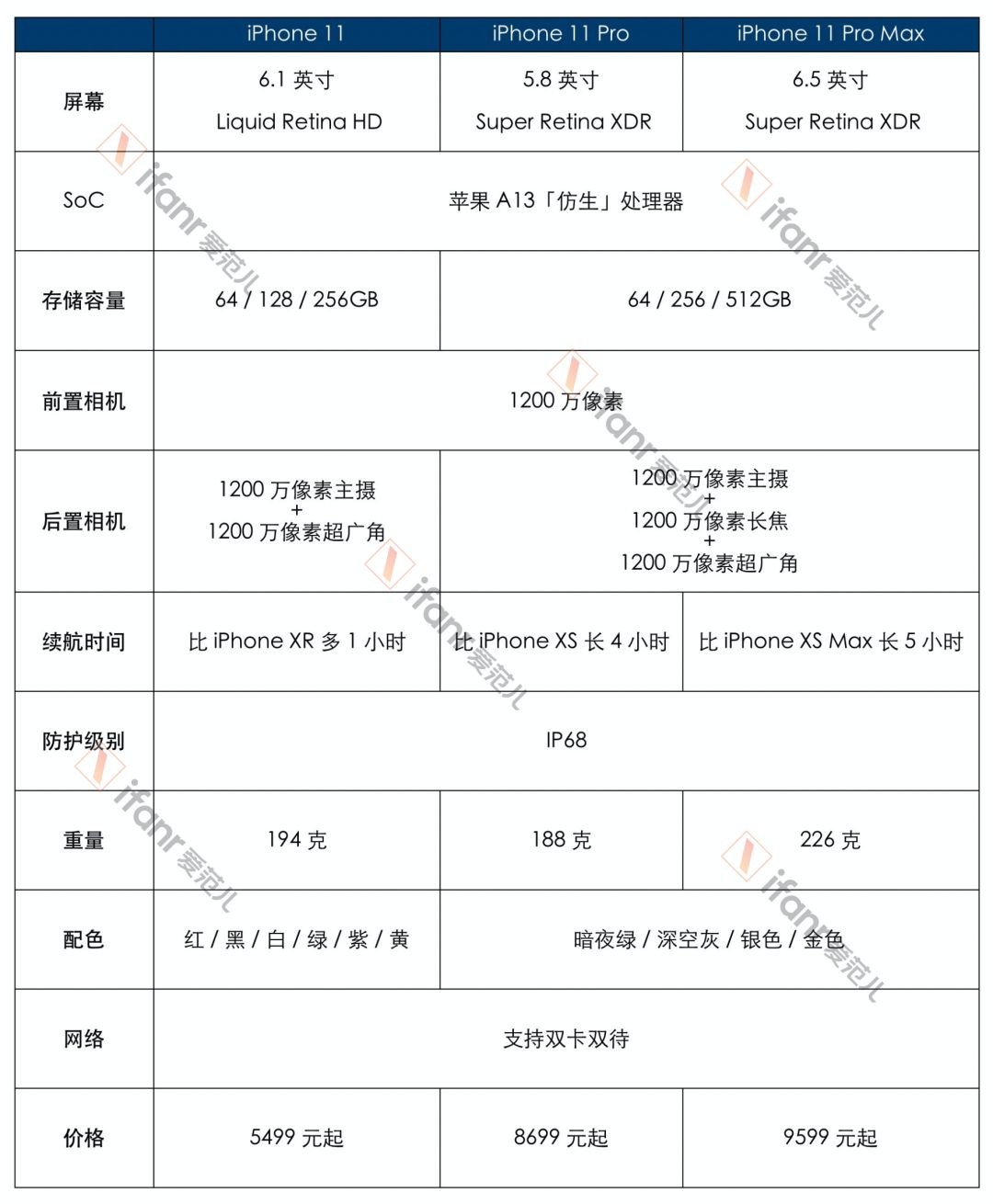 为了让你更好地理解这三款新品各自的高低定位,我们将它们与去年的三款 iPhone 进行一一对照: