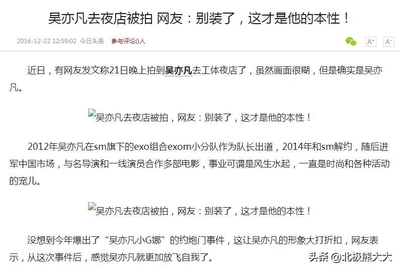 再加上当时吴亦凡的狂热粉很多,她们不承认照片中的男主角是吴亦凡。