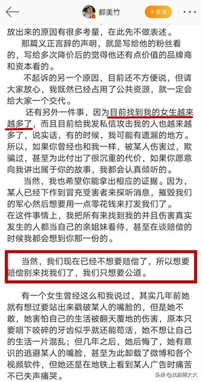 就在都美竹站出来手撕渣男之后,越来越多的受害者也站了出来,找她爆料的女生也越来越多。