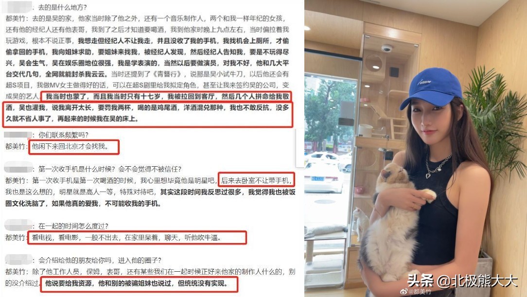 都美竹表说自己当年就是这样被吴亦凡软硬兼施骗到手的,和吴亦凡谈恋爱之后最大的感受就是再也不想谈恋爱了。