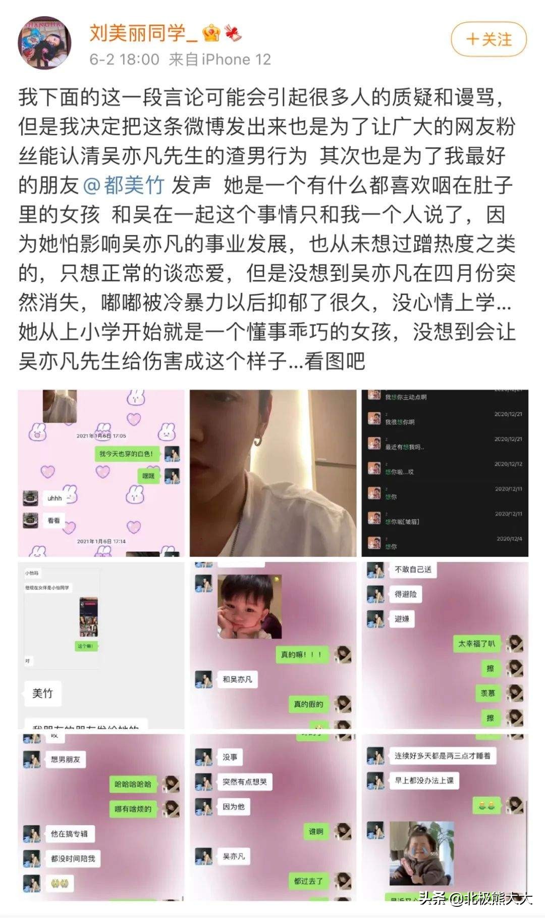 起因是在2021年6月2日的时候,刘美丽同学发了一则动态diss吴亦凡,大骂他为渣男。