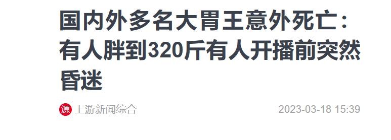 上游新闻2023.3.18关于“国内外多名大胃王意外死亡:有人胖到320斤有人开播前突然昏迷”的报道