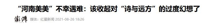 澎湃新闻2021.8.25关于“河南美美不幸遇难:该收起对“诗与远方”的过度幻想了”的报道