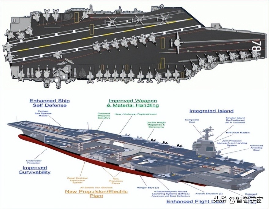 通过工作可用性的提高和舰岛体积的缩小,减少人员编制,提高飞机出动架次率