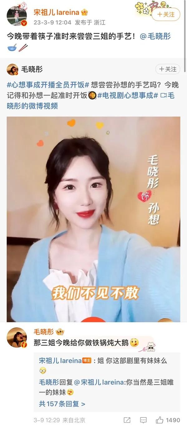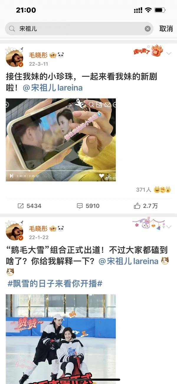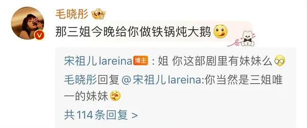 祖儿和毛晓彤互动也多,去她微博搜搜艾特姐姐的更多。