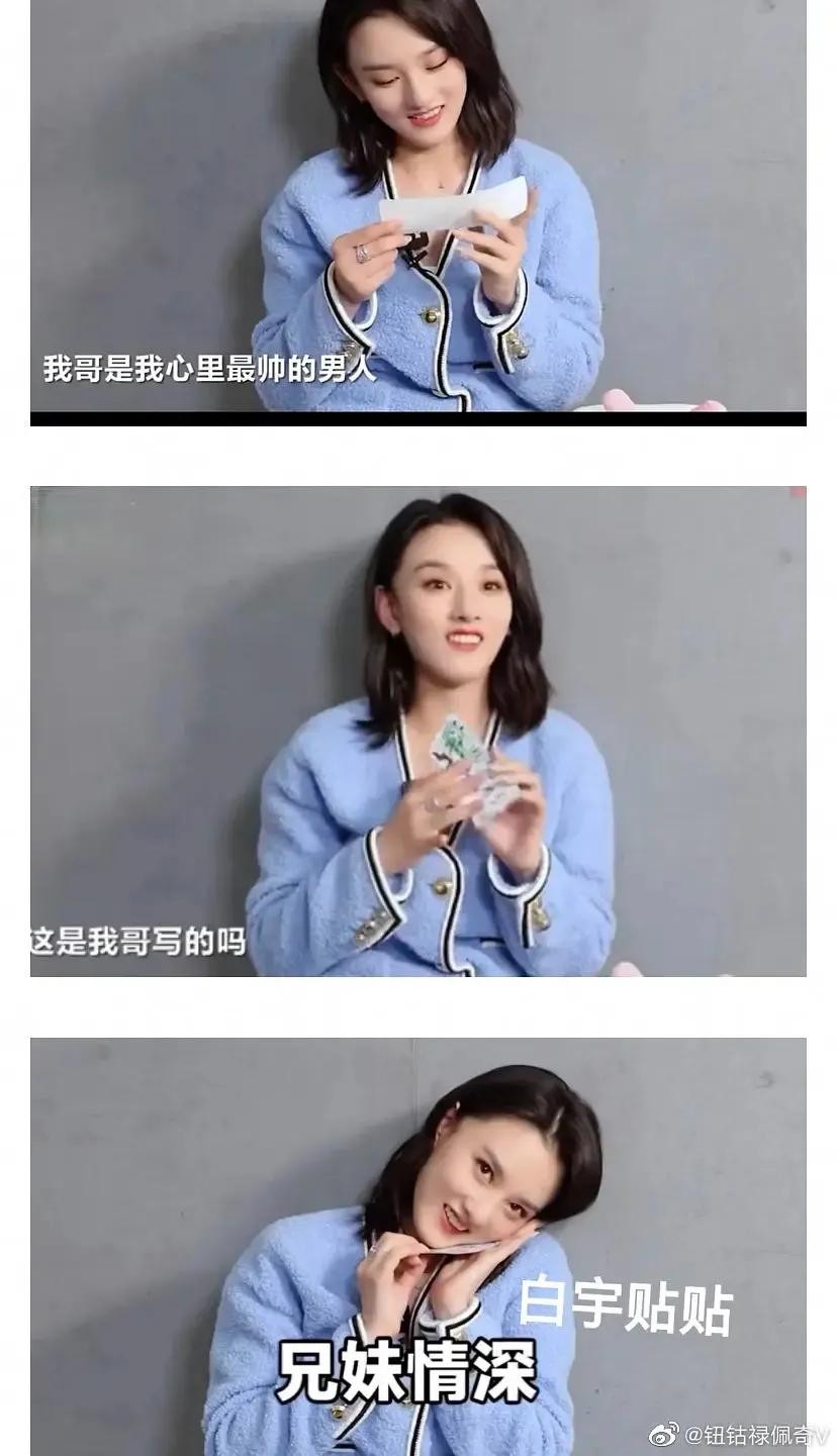 有一次采访,有一个纸条是上个嘉宾留下的问题,结果是白宇的,她直接用脸贴这张纸,超级开心说“白宇贴贴”。