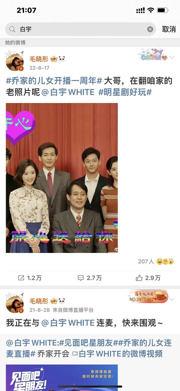 乔家售后一直很多,演完从剧内到剧外,白宇、毛晓彤、宋祖儿互相称呼的一直是大哥和妹妹。