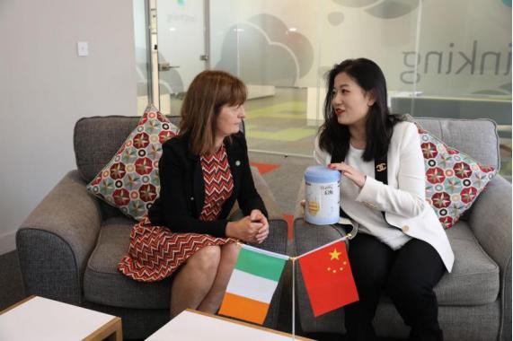 惠氏营养品中国启赋事业部副总监顾维斯向爱尔兰食品局市场总监Ailish Forde介绍蓝钻启赋上市