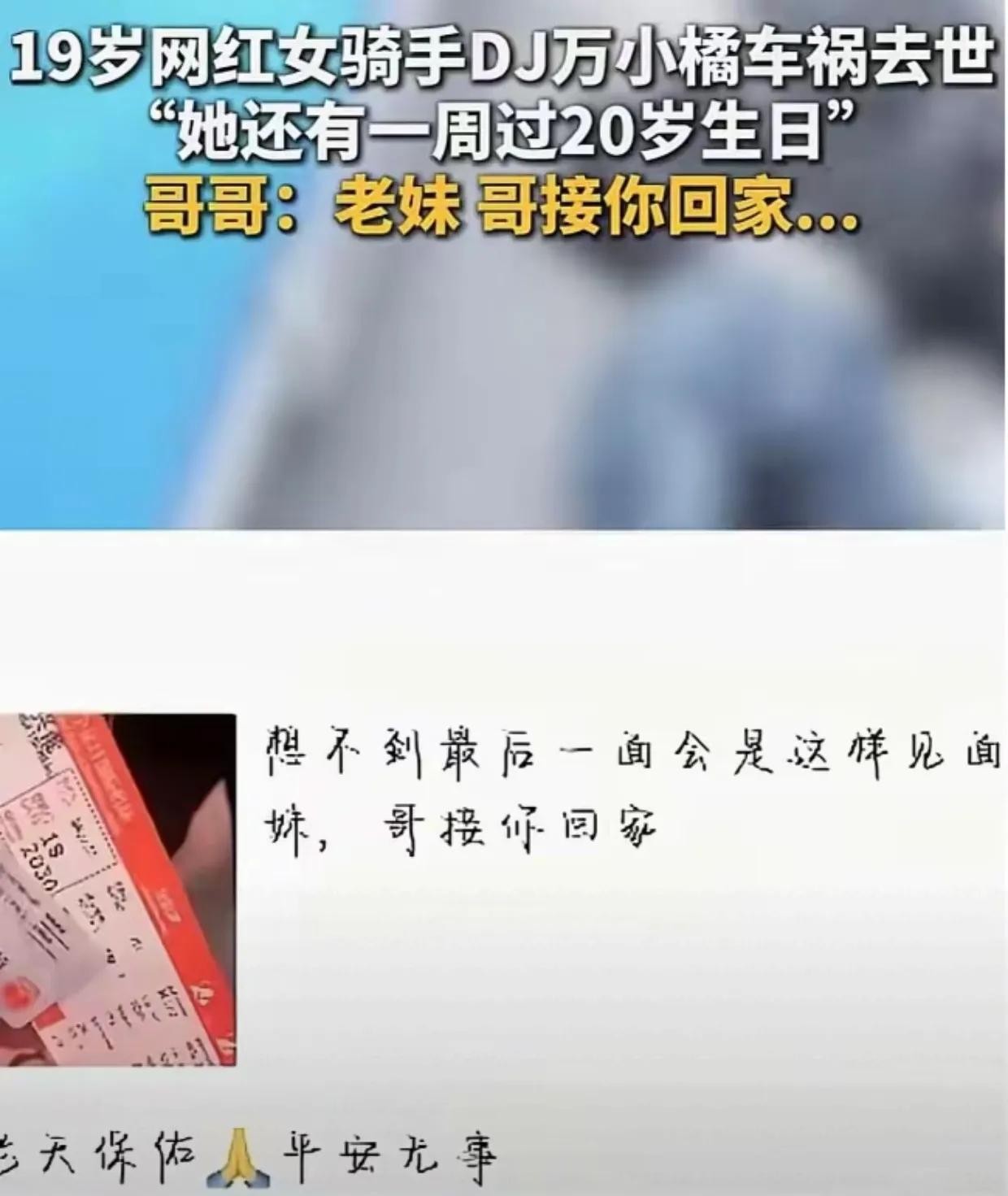 19岁机车网红小橘车祸去世!去年才拿驾照,两个月前违规被罚