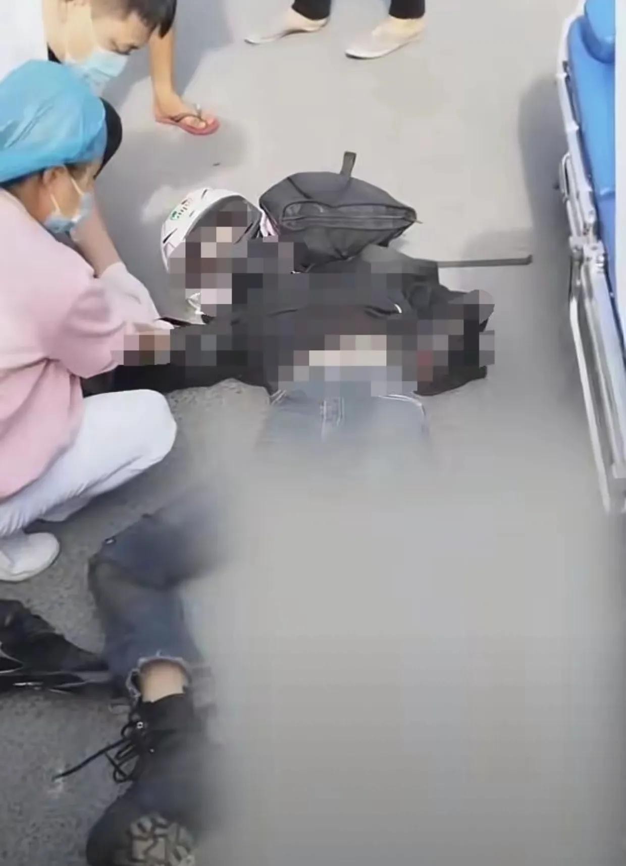 医生赶来时,立刻就对她进行了一系列的检查和抢救,简单处理后才拉上救护车带走。