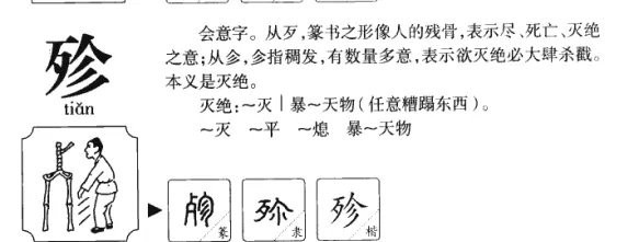 值得注意的是,"殄"是一个单音字,只有"tiǎn"这一个读音。有些人之所以会读错,可能是把它和形近的"展"(zhǎn)或"佃"(diàn)混淆了。
