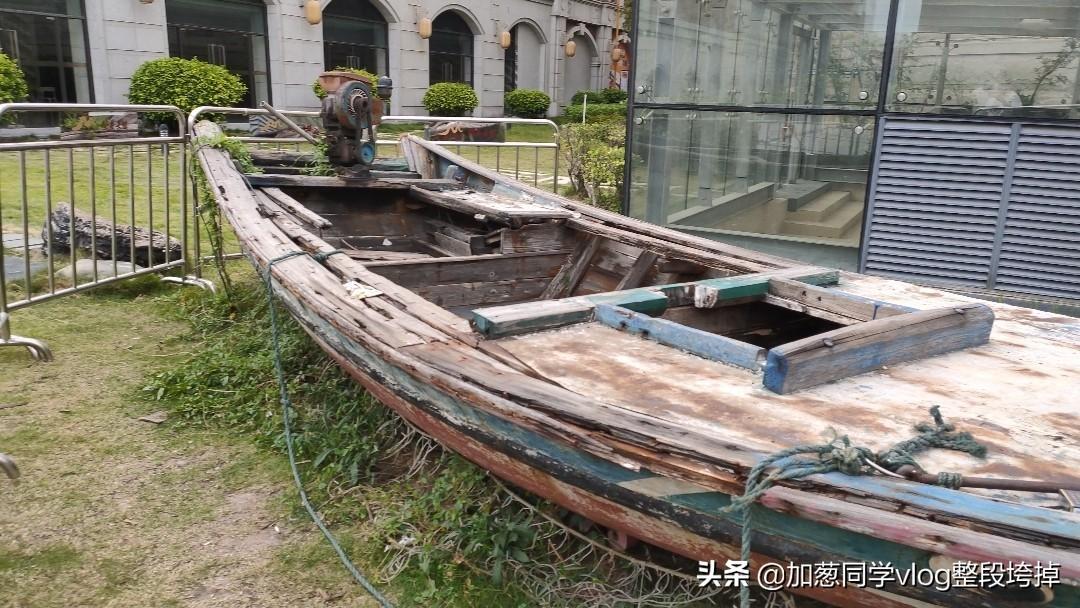 进门一直往前走,大约100米,能看见一只旧船。