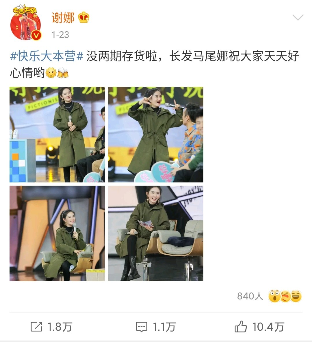 希望谢娜能安心养胎,身体健健康康的产下小孩,早日回归到大众视野,继续在《快乐大本营》中发光发热,将自己的欢乐和温暖传递!