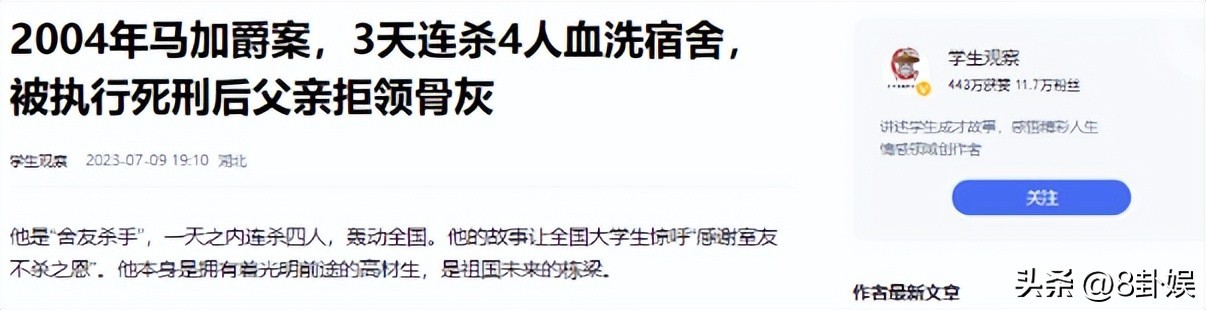 学生观察2023年7月9日——《2004年马加爵案,3天连杀4人血洗宿舍,被执行死刑后父亲拒领骨灰》