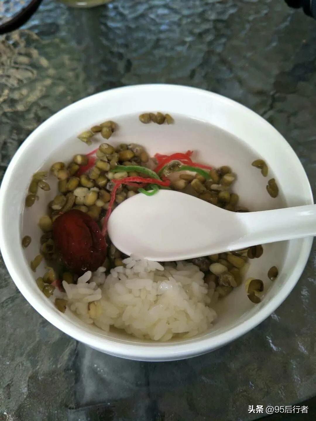 走累了可以来上一杯苏州绿豆汤,尝尝白水鱼。来之前在网上看到很多人说,喝绿豆汤就像是喝牙膏水,我也就舍身证明了一下,大家也不要总是听网上说什么就是什么,一定要亲自挑战一下。苏州绿豆汤它的配料是蜜枣、青红丝、葡萄干、冬瓜糖、蜜豆、糯米、血糯和薄荷水,调制而成。试过了以后,就知道和网上说的一样,真的是一股牙膏味。