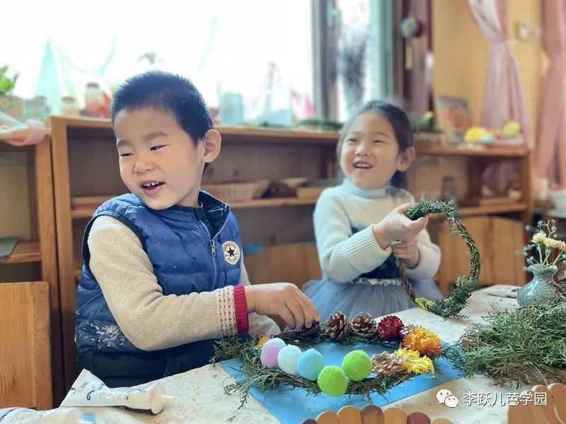 这三张照片,是李跃儿芭学园的孩子们今天上午在教室里做新年花环。孩子们的笑容里,有动手创造的乐趣,有过节的快乐。