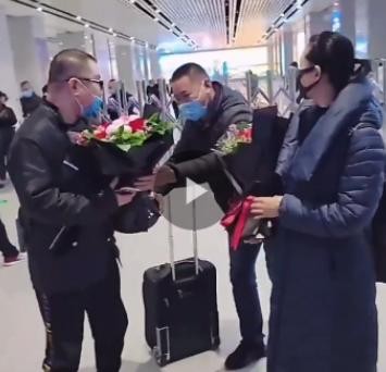 今天,尹相杰身穿一身黑色休闲衣,买了两束玫瑰花到山东机场迎接妻子从老家临沂来的岳父岳母,看视频感觉画面非常温馨。