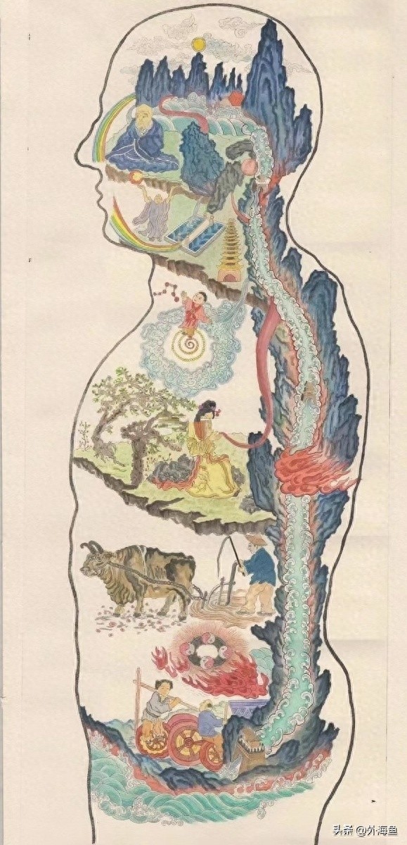 中国道家哲学长期以来一直将人体和自然视为宇宙秩序的反映。如果我们把世界地图竖着看,我们会发现它的结构与道教的“内经图”有惊人的重合。这种相似性揭示了地球与生命之间的深刻联系,体现了天人合一的理念。