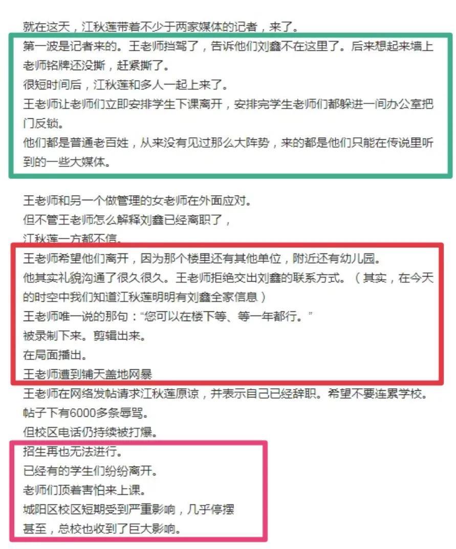 后来,刘鑫就职的培训机构不堪其扰,连续几年收到众多网友的质疑和谩骂,网爆已经严重影响了他们公司的经营。