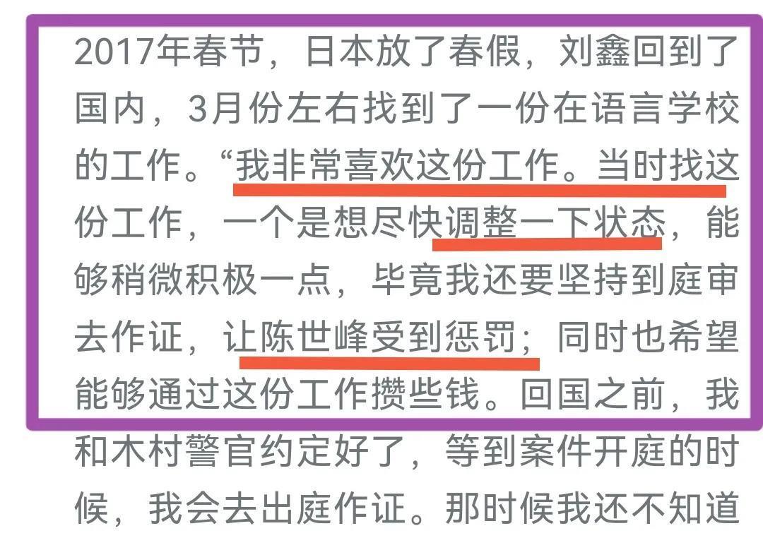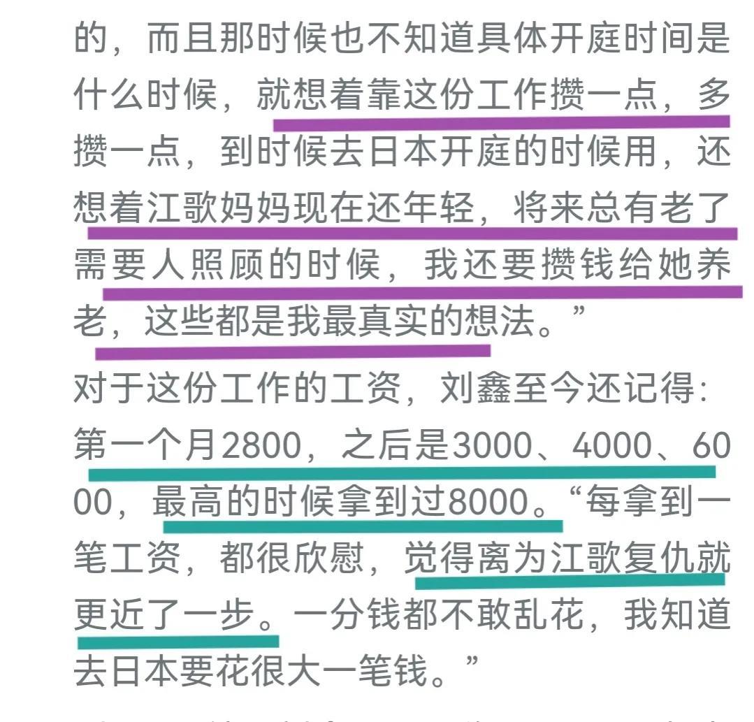 刘鑫曾经表示,自己很喜欢这份工作。她除了想换个环境,主要也想赚点钱,然后等开庭的时候,再回去日本去作证。