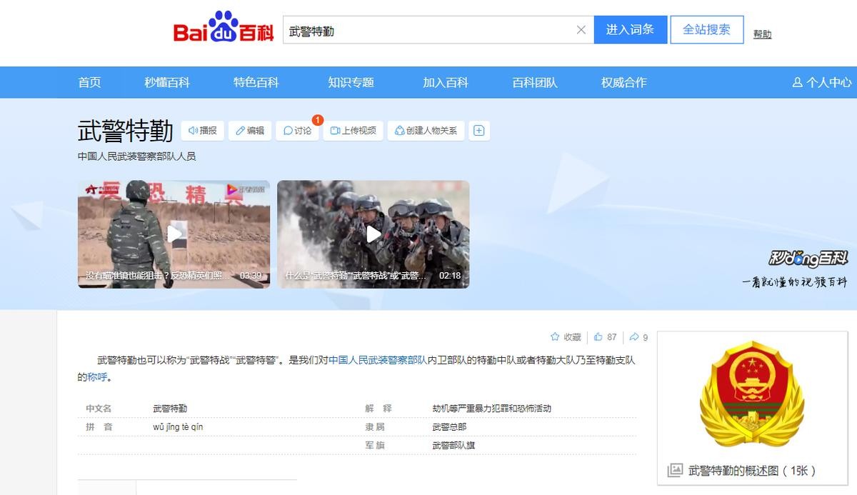 百度百科,武警特勤