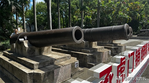 销烟池旁边有一些大炮,这些大炮是军民配合在海里打捞出来的当年的大炮,前后对比就能感觉出清军大炮的英国大炮的区别了。清军炮非常大,而且笨重,上面已经锈迹斑斑了,而英国的炮非常小巧,炮口口径又一样大,而且经过这么多年,大炮依旧很光滑。