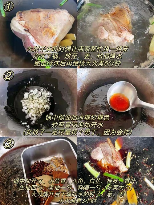 炖煮的时间:炖煮肘子的时间要足够长,一般需要3小时左右。这样,肘子的肉质才能变得更加软烂入味。如果时间不够,肘子的肉质可能会比较硬,影响口感。