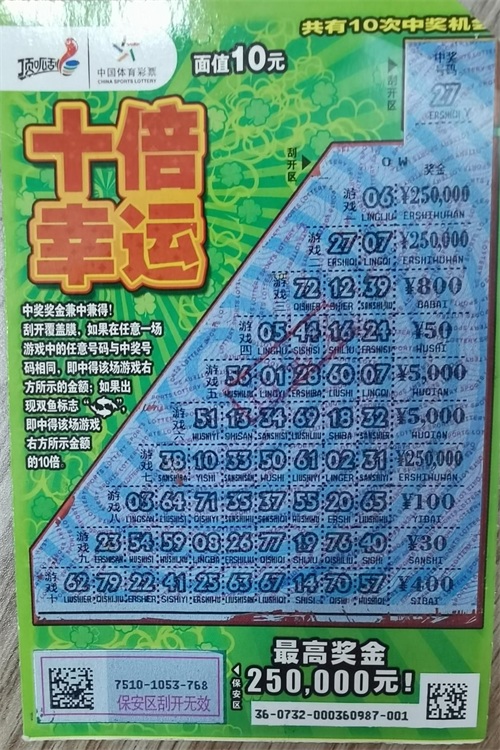 体彩顶呱刮“十倍幸运”自上市以来就受到购彩者的喜爱,历经多年销售热度不减,是10元面值顶呱刮中的经典产品。