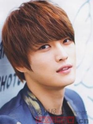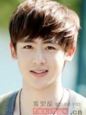 这是一款很受男生们喜爱的平刘海短发,看起来有锅盖头的可爱呆萌又有短发的清爽,很适合的一款男生圆脸发型哦。