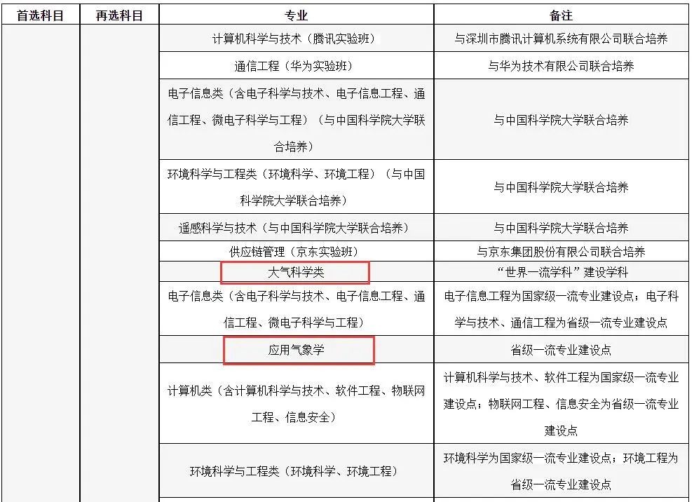注:在报考时需要注意的气象专业也是按照大类招生。不直接招收大气科学专业的学生,而是归入到该校的数理科学类和地球科学与资源环境类,在一年级结束后才分流进入大气科学学院。