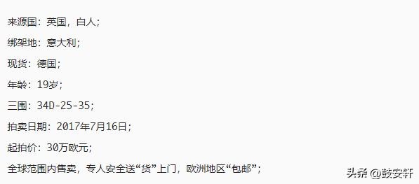 拍卖的公示显示了她的身份,一位年仅19岁的英国女模,不法分子通过以拍照片为由,将她诱骗至意大利的米兰。