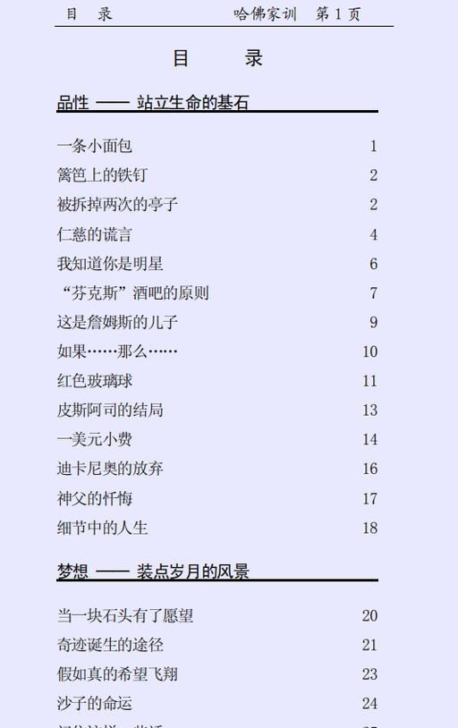 《哈佛家训》中的每个故事都具有丰富的教育功能和深刻的生活意义,不仅可以激发青少年对社会、人生进行多角度的思考,还可以点燃他们内心深处的智慧火花,使他们见微知著,从一滴水看见大海,由一缕阳光洞见整个宇宙。 这是一部教子课本,也是一部成人的修身指南。许多望子成龙的人,总是认为孩子应该这样做或那样做,他们自己却经常背道而驰。父母觉得自己比孩子高明,但事实并非如此。如果我们没有比孩子们做得更好,我们至少应该和他们一起成长!