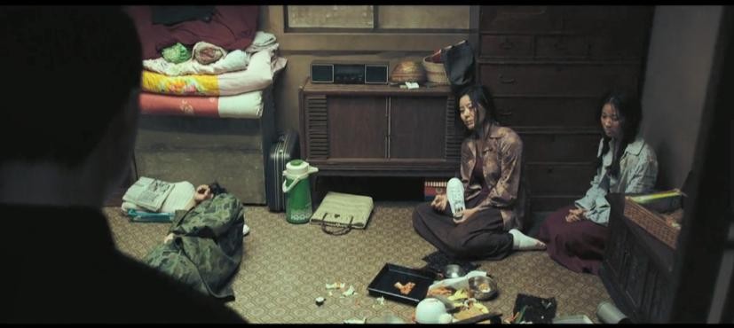 父亲死后,门口放着三双鞋,可以看出,母亲和姐姐还活着,通过后来的门口的鞋的变化,可以看出他后来又杀死了嗜赌的母亲,而姐姐最终受不了而自杀了。