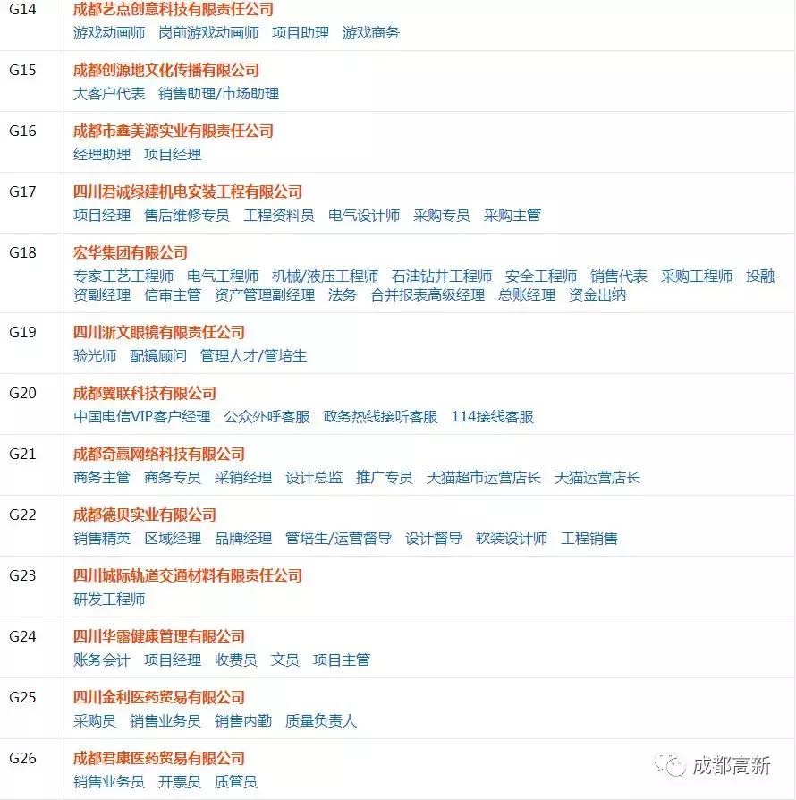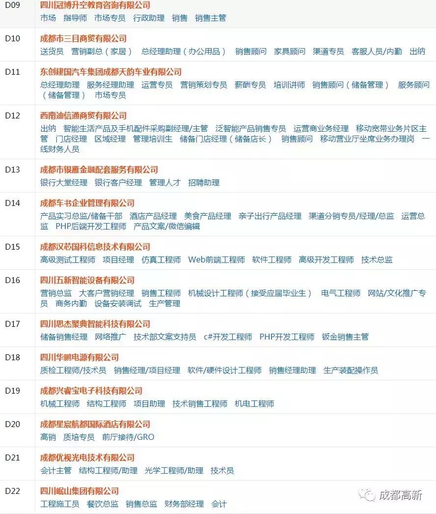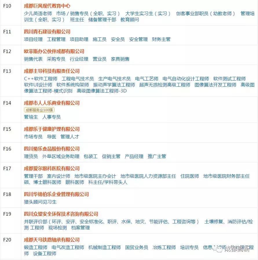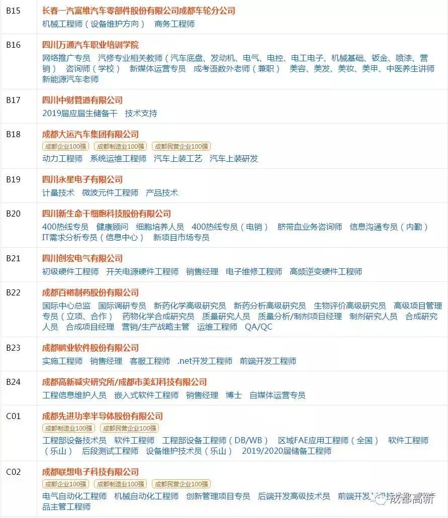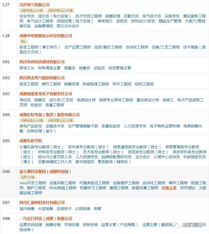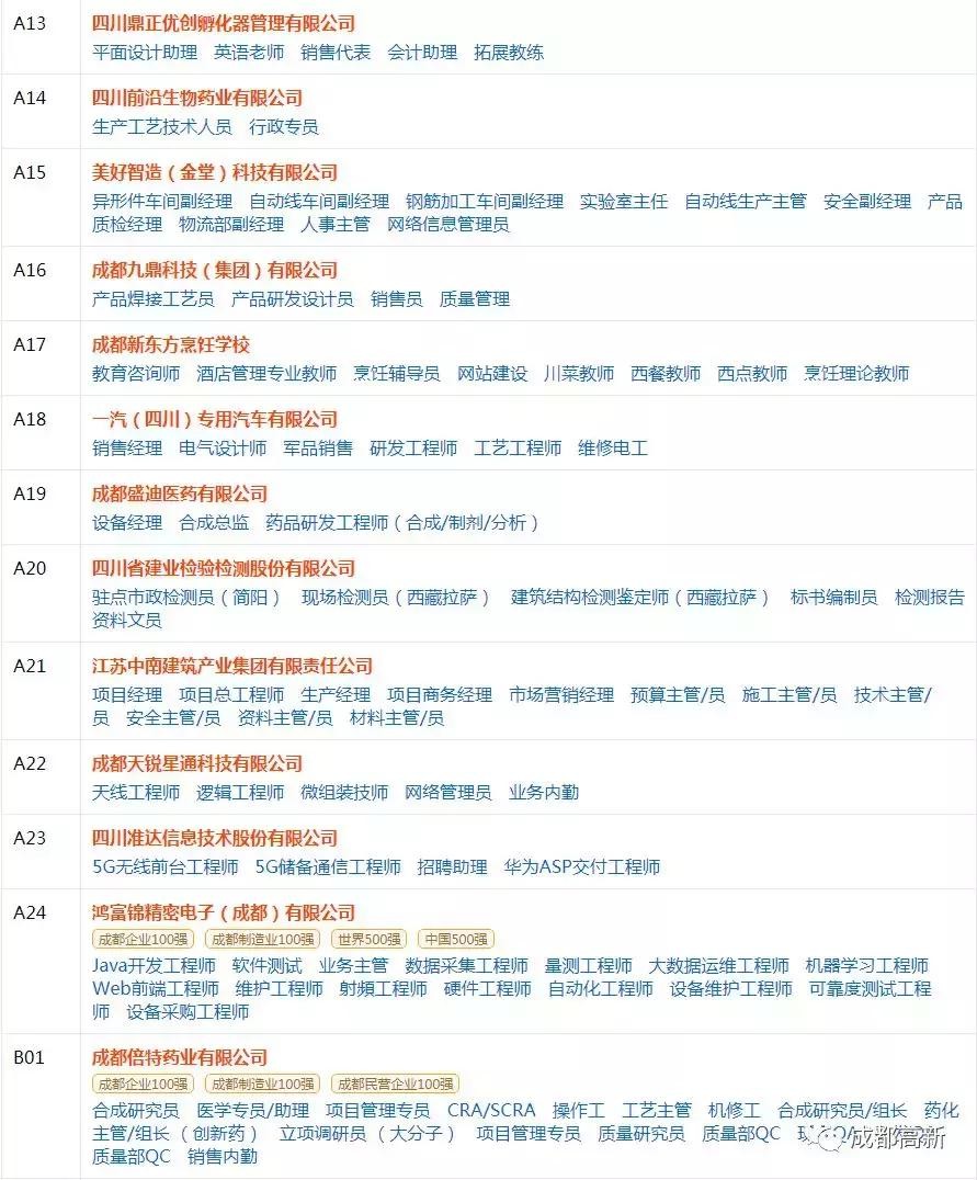 招聘会现场将有来自全市的300家企业参会,其中不乏代表成都市产业发展方向的支柱产业和高新技术企业。中航成飞、联想电子、士兰半导体、十九冶等大型集团及其旗下企业,也有利尔化学、苏宁易购、京东、云图控股等优质上市股份公司,还有成都交大光芒、交大铁路发展股份有限公司等国有企业。据统计,参会单位已发布各类中高级岗位和基础岗位8000余个。