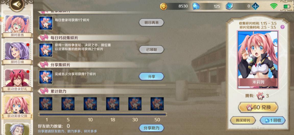 只需要我们每天登陆游戏对战,就可以收集一定量的英雄碎片,同时通过好友分享,还能够加快收集进度,只要在活动结束前完成收集,那么我们就能免费兑换到这名联动英雄。