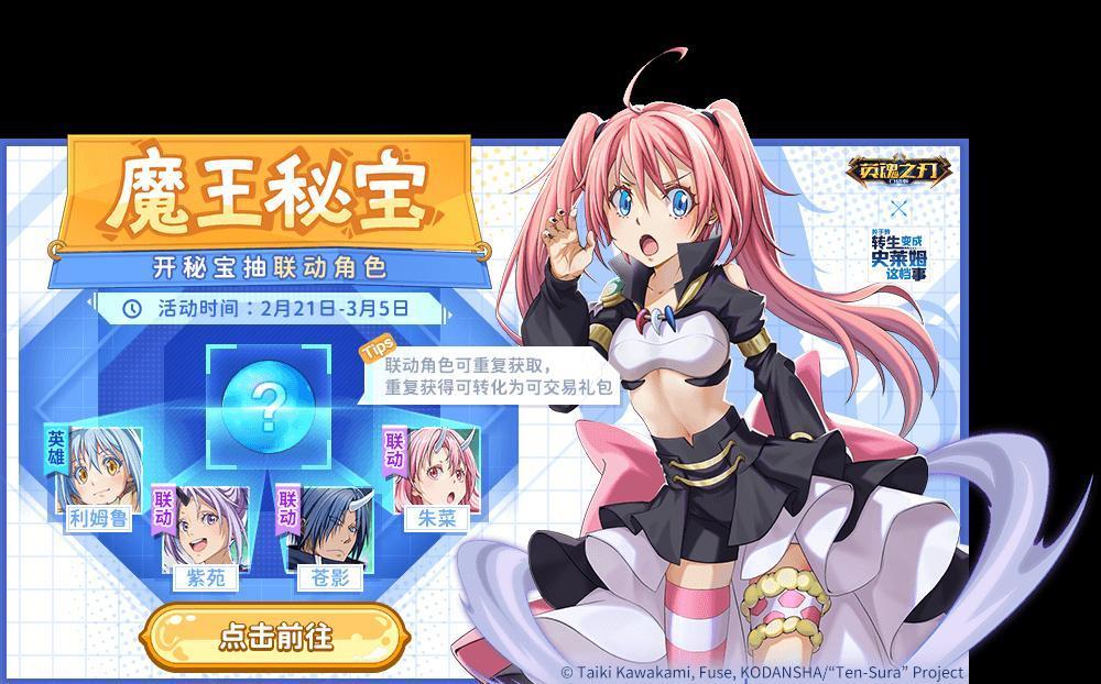 在游戏中,官方还常常给玩家送出诸多福利,并且在这些福利之中,除了让玩家们免费白嫖的稀有游戏皮肤,还可以让玩家们完成任务就能免费领取的联动英雄,其中在今年的2月活动月里面,英魂就联动了《转生史莱姆》这部动漫,并推出了全新的联动英雄—米莉姆。