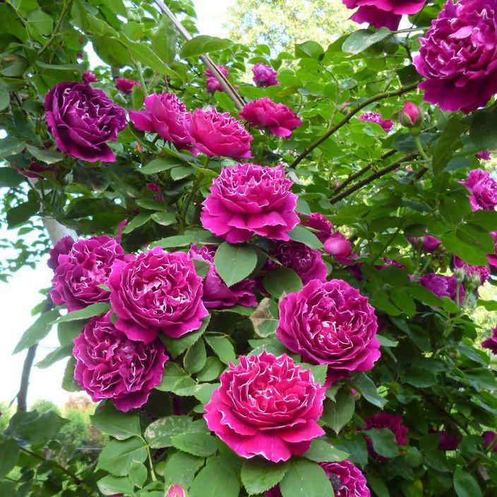 花朵中等大小,花型平展,叶片不仅大而且稠密,枝条茂密,弯曲生长。它的生长速度比较快,还有不错的抗病能力。