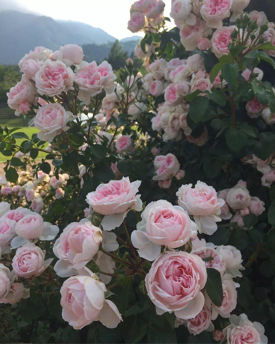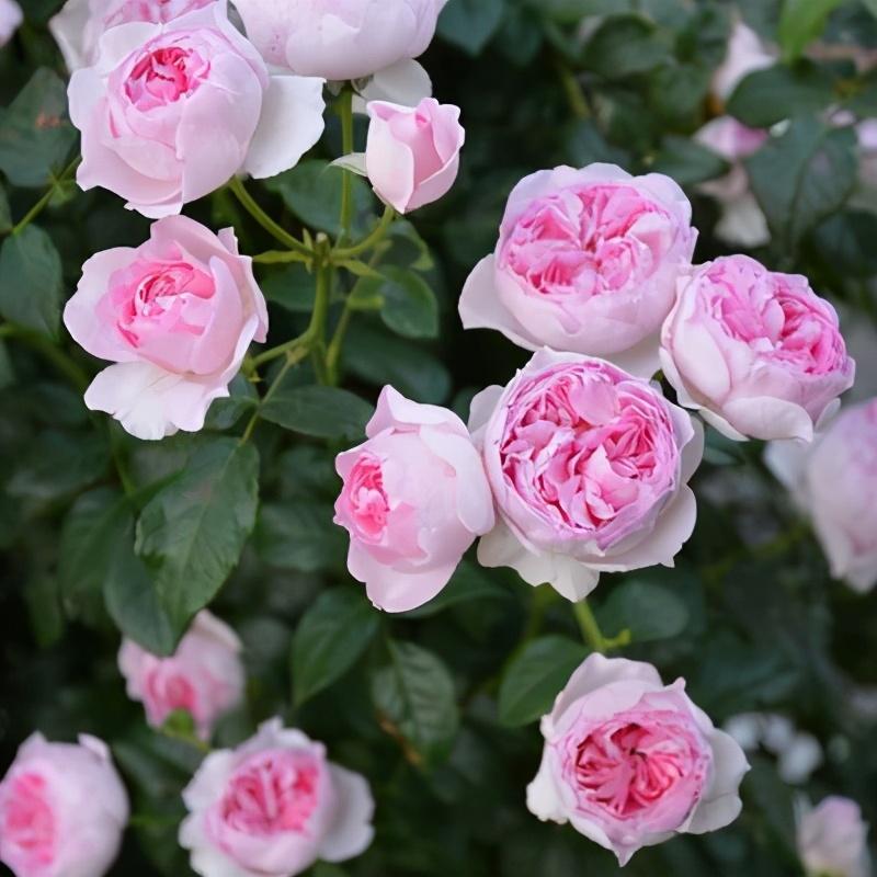 它的花型娇小而可爱,外瓣是粉红色,内瓣颜色自然过渡发白并袒露出淡黄颜色的花蕊。它有着淡淡的水果香味,多季节连续开,丰花密集有活力。攀爬性强,最高可爬2米,适合围栏装饰。