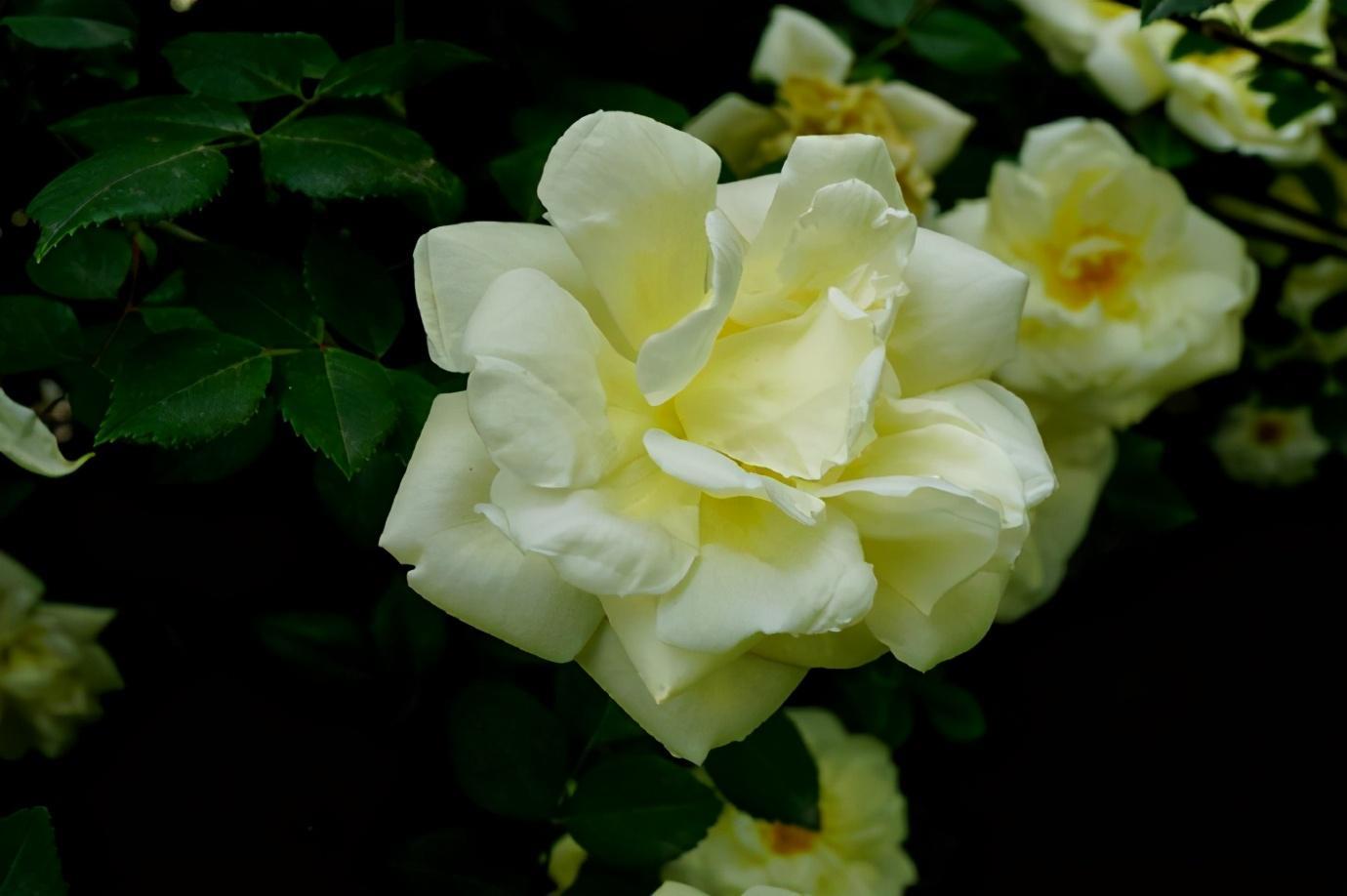 白卧龙是一种纯白的爬藤月季,月季白卧龙性情顽强,耐热耐旱更耐寒,任何条件任何土质都生长得很旺盛。在花苞的时候,花瓣边缘还有一点点红点,它也是一种勤花,多季重复持续开花。